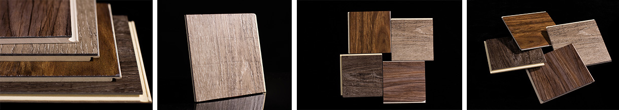 SPC基层+装饰层+耐磨层在线一步法挤出,后续上UV层,增加其耐磨系数及光洁度。